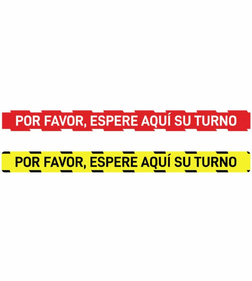 Adhesivo de suelo antideslizantes y permanentes. Espere su turno – Covid-19. Adhesivo. 60 x 5 cm.