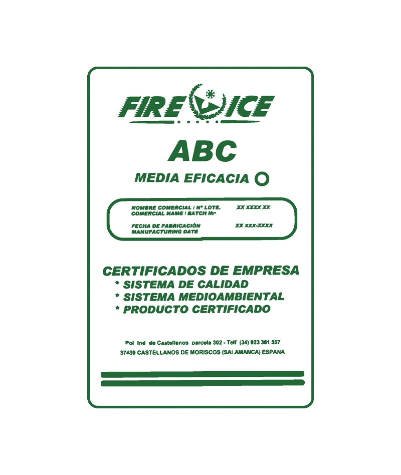 Agente Extintor POLVO ABC Agente extintor de eficacia media.Válido para: extintores portátiles de eficacia media.Se suministra en sacos de 25 kg. Certificados: Certificado Aprobación Certificado Calidad Marca Calidad de Producto