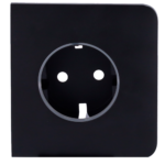 Tapa lateral negra AJAX AJ-SIDECOVER-B diseñada para enchufes inteligentes tipo F del ecosistema Ajax. Incorpora indicador LED para visualizar el estado del enchufe y consumo eléctrico, además de botón táctil para control manual directo. Solución ideal para instaladores profesionales que buscan integración estética y funcional en sistemas domóticos de seguridad.