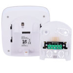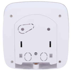 El acabado en color blanco permite una integración discreta en cualquier tipo de interior corporativo o residencial premium. El diseño compacto facilita la instalación en pasillos, recepciones, salas de servidores o zonas de almacenamiento sensible. La sirena genera un tono penetrante de 105 dB capaz de alertar en espacios de hasta 150 m² con acústica estándar.