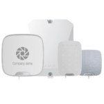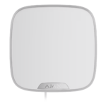 La sirena interior incorporada ofrece 105 dB de potencia acústica, suficiente para disuadir intrusos en espacios cerrados y alertar a ocupantes. Complementariamente, la sirena exterior personalizable permite identificar visualmente la instalación protegida y cumplir con requisitos de señalización en instalaciones comerciales. Ambas sirenas disponen de protección antisabotaje y batería de respaldo.
