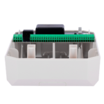 El módulo incluye indicadores LED de estado que facilitan el diagnóstico durante la instalación y el mantenimiento, mostrando el estado de comunicación Fibra, alimentación y actividad de las zonas. El diseño compacto permite instalación en cajas de distribución estándar o gabinetes de seguridad, con opciones de montaje en pared o carril DIN según las necesidades del proyecto.
