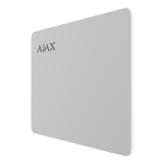 Tarjeta de proximidad cifrada AJAX Pass AJ-PASS-W en color blanco, diseñada para el armado y desarmado del sistema de seguridad Ajax mediante el teclado KeyPad Plus. Utiliza tecnología DESFire EV1 con cifrado avanzado y permite la conexión simultánea a hasta 13 centrales Ajax, ideal para instalaciones profesionales de control de intrusión.