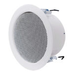 El diseño empotrable permite una integración estética en falsos techos, manteniendo la uniformidad arquitectónica sin comprometer la funcionalidad del sistema de megafonía. La rejilla protectora frontal asegura la protección del transductor ante impactos accidentales o manipulaciones, prolongando la vida útil del equipo en entornos de alto tránsito.