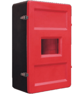 El diseño de doble compartimento del armario AR-POLIROTO2E permite la instalación simultánea de dos extintores de polvo, optimizando el espacio disponible en pasillos, recepciones, naves industriales y zonas de riesgo específico. La polirótula utilizada en su fabricación ofrece una resistencia excepcional a impactos, corrosión y variaciones térmicas, manteniendo sus propiedades mecánicas incluso en ambientes con humedad elevada o exposición a productos químicos.
