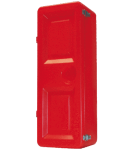 Armario extintor POLIEKO diseñado específicamente para alojar extintores de polvo ABC de 12 kg. Fabricado en chapa de acero con acabado resistente, cumple con las exigencias del RIPCI para la protección y señalización de equipos contra incendios en instalaciones profesionales.