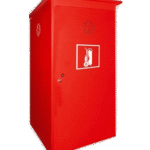 Armario metálico de alta resistencia diseñado para alojar extintores de polvo o CO2 de 25, 50 y 100 kg en instalaciones industriales. Cumple con la normativa RIPCI y garantiza la protección del equipo contraincendios frente a condiciones ambientales adversas, vandalismo y manipulación no autorizada.