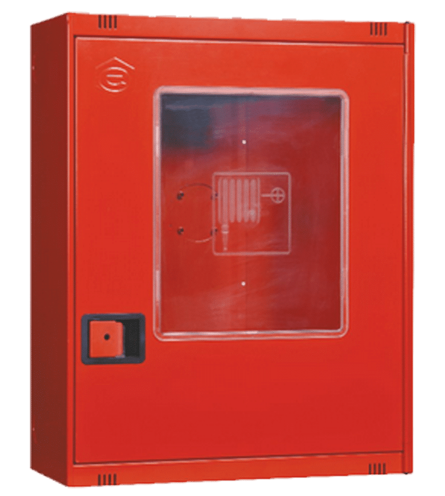 El armario vacío con puerta con visor CPS1, está fabricado en chapa de acero con acabado pintado Ral-3000 y con cerradura en resbalón.