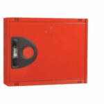 El armario de la BIE 45mm EACI Línea 510 presenta unas dimensiones de 480 x 600 x 155 mm (Alto x Ancho x Fondo), optimizadas para instalaciones donde el espacio horizontal es prioritario. La construcción en chapa de acero de 1,2 mm de espesor garantiza una resistencia mecánica superior, mientras que el acabado en poliéster RAL 3000 proporciona protección anticorrosiva y visibilidad normativa. La devanadera termoplástica de nueva generación sustituye a las obsoletas devanaderas de chapa, eliminando problemas de abolladuras, deformaciones, deterioro de pintura y oxidación, además de ofrecer mayor resistencia al impacto y menor peso para una manipulación más ágil durante la emergencia.