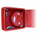El acabado en Poliéster RAL 3000 (rojo seguridad) garantiza alta visibilidad conforme a la señalización requerida por normativa, manteniendo su aspecto durante años sin decoloración ni deterioro. La junta técnica Ruberend perimetral asegura estanqueidad total contra polvo, agua y agentes externos, protegiendo los componentes internos de la BIE.