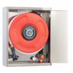 Boca de incendio equipada BIE 25mm EACI modelo 690CI con armario y puerta en acero inoxidable AISI 304 acabado brillo y grafilado. Equipo completo con manguera semirrígida de 20 metros certificado según UNE-EN 671-1. Diseñada para instalaciones de alta gama en edificios administrativos, hoteles, hospitales y espacios que requieren estética cuidada.