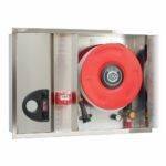 La boca de incendio equipada EACI incorpora el distintivo BIE para ZONA NOBLE que caracteriza a los equipos de gama alta diseñados para instalación en espacios que requieren cuidada estética. Las cerraduras Glide reversibles con precinto de seguridad permiten verificación visual inmediata de la integridad del equipo, mientras que el codo externo facilita la sustitución de manguera de forma visible y sencilla. La disponibilidad de recambios originales EACI y el soporte técnico especializado del fabricante garantizan operatividad a largo plazo de tu inversión en protección contra incendios.