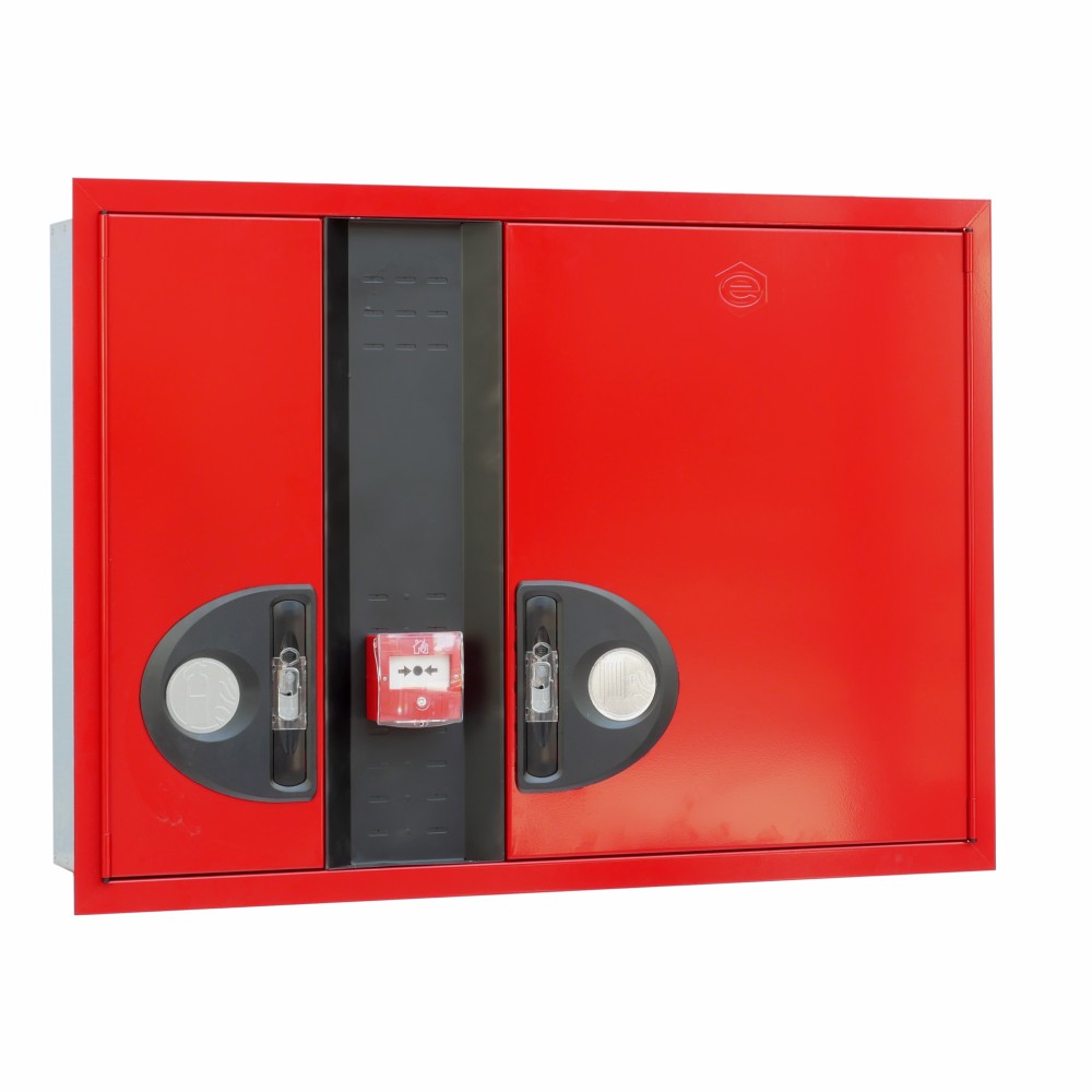 Frente a la competencia que ofrece BIEs básicas de 650×680 mm o modelos estándar sin compartimento para extintor, la BIE EACI homologada COMPAC 3 integra en un único armario todos los elementos de primera intervención. El innovador sistema de cerradura Glide transforma el movimiento vertical en horizontal, ofreciendo una estética diferenciadora mientras los pulsadores quedan resguardados dentro del armario. Las devanaderas termoplásticas eliminan los problemas de las obsoletas de chapa de acero: sin abolladuras, sin deformaciones, sin deterioro de pintura, sin oxidación, mayor resistencia al impacto y significativamente más ligeras.
