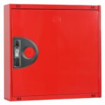 Las dimensiones del armario son 700 x 700 x 210 mm, con configuración horizontal que permite su instalación en espacios donde la altura disponible es limitada. El armario está fabricado en chapa de acero de alta calidad con acabado en pintura poliéster electroestática RAL 3000 (rojo normalizado) o RAL 9010 (blanco) como opción. La puerta encastrada incorpora el innovador sistema de apertura Glide, que transforma el movimiento vertical en horizontal para una operación más ergonómica y una estética diferenciadora. El brazo pivotante abatible reforzado permite extraer la manguera con facilidad en cualquier dirección, con acabado en RAL 9005 negro. El eje de alimentación fabricado en latón de alta resistencia garantiza durabilidad y resistencia a la corrosión.