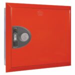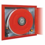 Boca de incendio equipada BIE 25mm EACI NARROW con configuración horizontal y formato reversible. Armario de dos cuerpos independientes con frontal extraíble y marco biselado, equipado con manguera semirrígida de 20 metros conforme a UNE-EN 671-1. Solución compacta ideal para edificios administrativos, comerciales y hoteles donde se requiere integración estética con mínimo fondo de empotramiento.