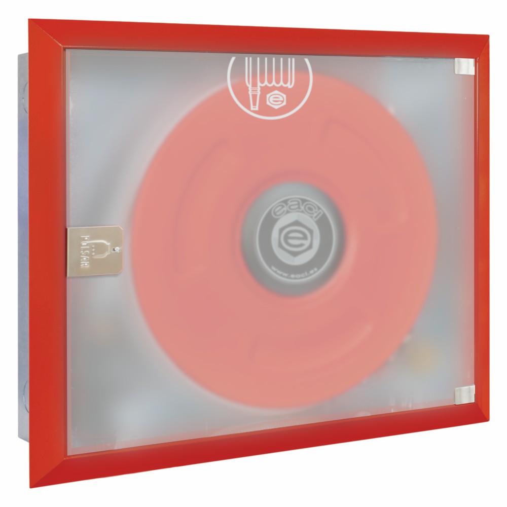 Las dimensiones del cajón de empotramiento son: Altura 610 mm, Ancho 730 mm y Fondo 175 mm, mientras que el frontal extraíble presenta unas dimensiones de Altura 695 mm, Ancho 815 mm y Fondo 30 mm. El acabado exterior en Poliéster Ral 3000 (rojo normalizado) garantiza la identificación inmediata del equipo según normativa, mientras que la puerta de metacrilato translúcido permite comprobar visualmente el estado del equipo sin necesidad de abrir el armario. La devanadera fabricada en termoplástico copolímero ofrece una óptima estabilidad dimensional, resistencia al impacto superior a las obsoletas devanaderas de chapa de acero, sin abolladuras, deformaciones, deterioro de pintura ni oxidación. Cuenta con certificación de resistencia UV según exposición a fuentes luminosas de arco de Xenón conforme ISO 4892-2.