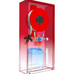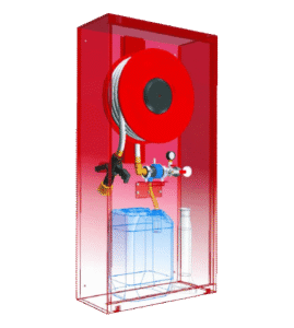 La Boca de incendios equipada agua / espuma DIN25, tiene unas dimensiones de 1400 x 700 x 300 mm y con 20 / 30 m de manguera semi-rígida de Ø25 mm. NO INCLUYE ESPUMÓGENO.