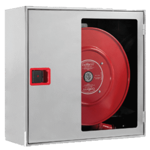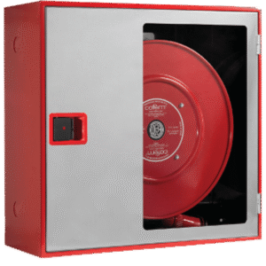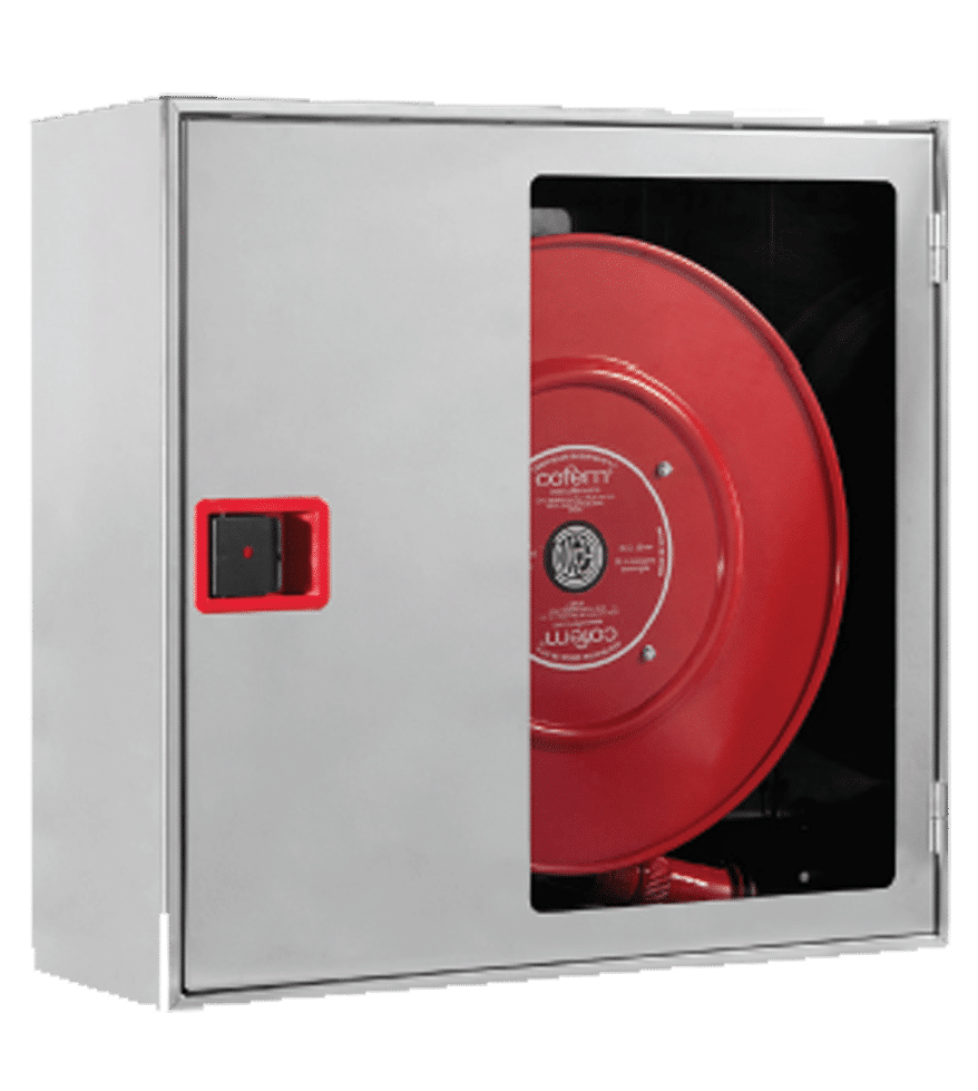 Boca de incendio Equipada Ø25 mm según norma UNE/EN 671-1 y 20 m de manguera semirrígida fabricada según UNE 694.