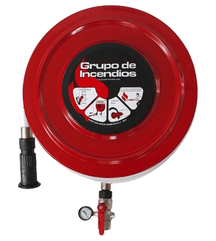 | Carrete | Pintado en rojo Ral 3002, de 450 mm ó 525 mm abatible. Colector de poliamida-fibra de vidrio, anticorrosión y muy resistente a la fricción. Sin armario. Entrada de agua mediante latiguillo. |
