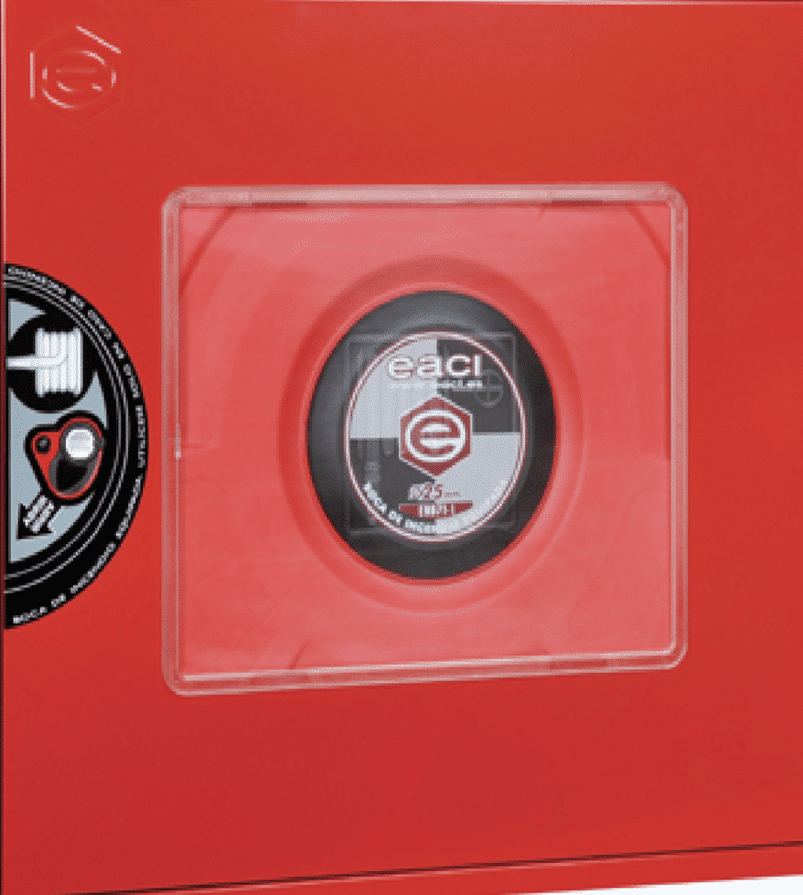 Boca de incendio equipada de 25 mm en armario VERSAL C, con configuración horizontal reversible y componentes preparados para una instalación robusta y funcional.