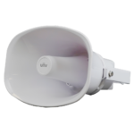El diseño compacto de la bocina Uniview facilita su montaje en paredes, columnas o estructuras mediante sistema de fijación robusto. Su construcción ligera en ABS reduce la carga sobre los puntos de anclaje sin comprometer la durabilidad del conjunto. El terminal de conexión permite cableado directo desde amplificadores o centrales de megafonía con líneas de 100V o baja impedancia.