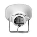 El soporte ajustable en acero inoxidable permite orientar el altavoz con precisión, facilitando la instalación en fachadas, postes o estructuras metálicas. Esta versatilidad de montaje reduce los tiempos de instalación y permite adaptar la cobertura sonora a las necesidades específicas de cada proyecto.