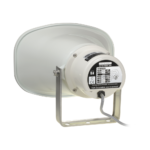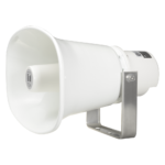 Bocina de megafonía exterior TOA-SC-630M con potencia de 5W, diseñada para aplicaciones profesionales de avisos y evacuación. Su construcción en aluminio con recubrimiento en polvo y herrajes de acero inoxidable garantiza resistencia a la intemperie. Alta inteligibilidad en mensajes de emergencia y anuncios públicos.
