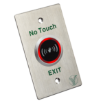 Botón de salida sin contacto ISK-841D con tecnología de sensor infrarrojo integrado y LED indicador. Fabricado en acero inoxidable de alta resistencia, permite la apertura de puertas en sistemas de control de accesos sin necesidad de contacto físico, ideal para instalaciones que requieren máxima higiene y durabilidad en entornos de alto tránsito.