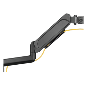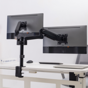 Un soporte de doble brazo de instalación en mesa para monitores es un accesorio diseñado para sostener y ajustar los dos monitores de forma ergonómica. Se fija al borde o a la superficie del escritorio mediante una base o abrazadera, y permite mover el monitor con libertad en diferentes direcciones: altura, inclinación, giro y distancia.