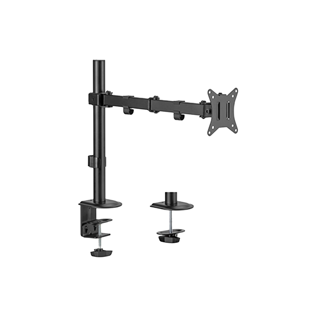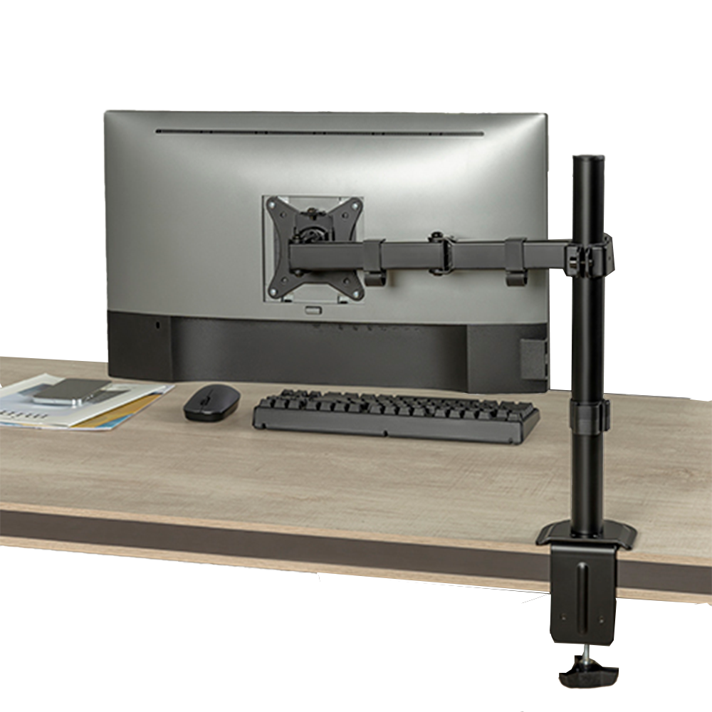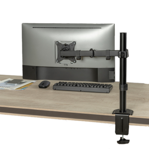 Un soporte de brazo de mesa para monitor es un accesorio diseñado para sostener y ajustar el monitor de forma ergonómica. Se fija al borde o a la superficie del escritorio mediante una base o abrazadera, y permite mover el monitor con libertad en diferentes direcciones: altura, inclinación, giro y distancia.