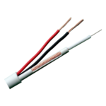 Cable coaxial RG59UP-100 de 100 metros en color blanco que integra conductor de alimentación en un único cable. Diseñado específicamente para instalaciones profesionales de videovigilancia CCTV, simplifica el cableado al combinar transmisión de vídeo y alimentación eléctrica en una sola cubierta.