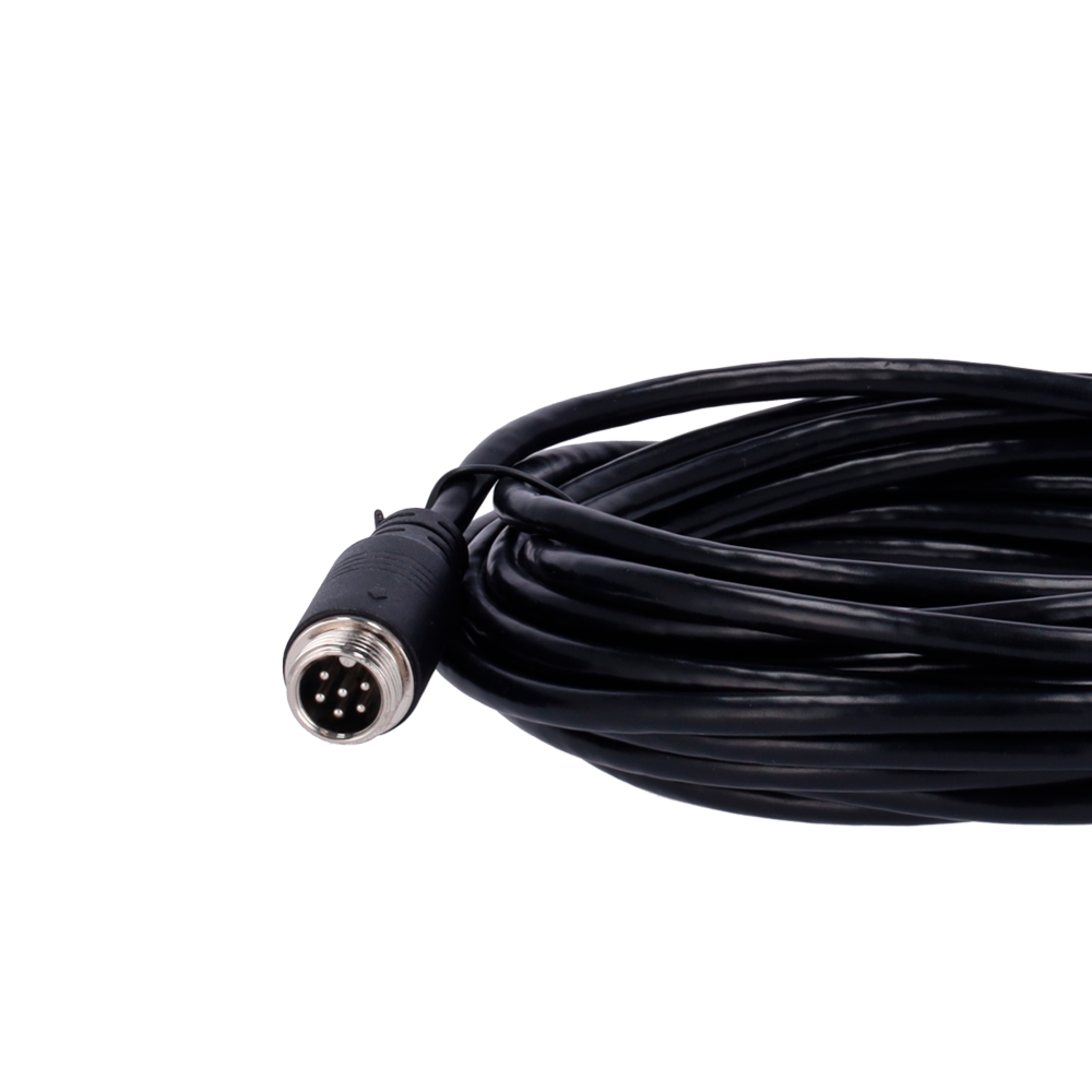 La longitud de 5 metros del cable ha sido calculada para cubrir las distancias típicas entre el grabador central (habitualmente instalado en la zona del conductor o compartimento técnico) y las cámaras distribuidas en el vehículo. Esta medida estándar evita excesos de cable que podrían generar interferencias electromagnéticas o dificultar el mantenimiento del sistema.