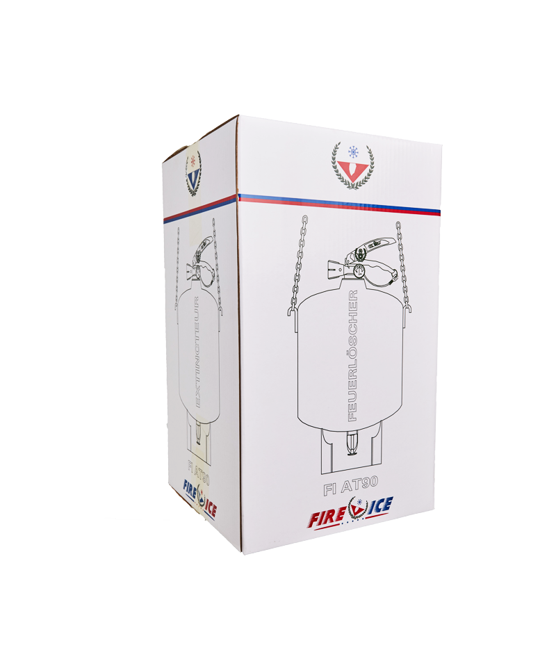Caja de embalajeFI AT90 Caja de embalaje de cartón de alta resistencia.Válida para: extintor de 9 kg automático de polvo. Fabricada en: papel KRAFT de 175 g/m2 y canal de 3 mm.Impresión de serigrafía para el posicionamiento del extintor. Certificados: Certificado Aprobación Certificado Calidad Marca Calidad de Producto