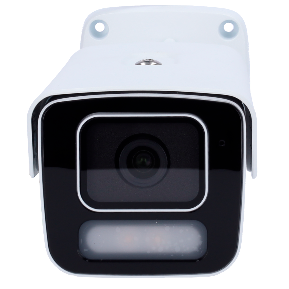 Cámara Bullet IP profesional de 4 megapíxeles con tecnología Color Hunter y WISE-ISP de Uniview. Equipada con lente fija de 4mm, iluminación LED blanca hasta 40 metros y WDR real de 130dB para captura de imagen en escenarios de alto contraste. Diseño robusto IP67/IK10 con PoE, audio bidireccional y almacenamiento microSD hasta 512GB.