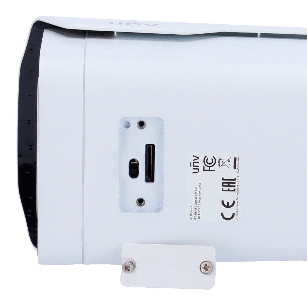 Con certificaciones IP67 e IK10, la cámara UV-IPC2B14SE-ADF40K-WP-I1 soporta condiciones climáticas adversas y resistencia al vandalismo, operando en rangos de temperatura desde -30°C hasta +60°C. Su carcasa metálica garantiza durabilidad en entornos industriales, logísticos y exteriores expuestos. El sistema de alimentación PoE (802.3af) simplifica la instalación al transmitir datos y energía por un único cable Ethernet, reduciendo costes de cableado y tiempos de despliegue.