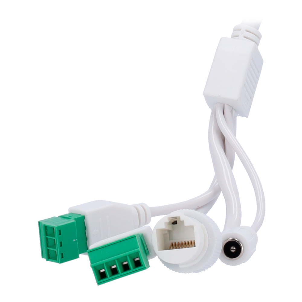 Incorpora ranura para tarjetas microSD con capacidad hasta 512GB, permitiendo grabación local como respaldo ante fallos de red o para instalaciones sin NVR centralizado. El micrófono integrado captura audio ambiente, mientras que la entrada/salida de audio y alarma amplían las posibilidades de integración con sistemas de intercomunicación y detección perimetral.