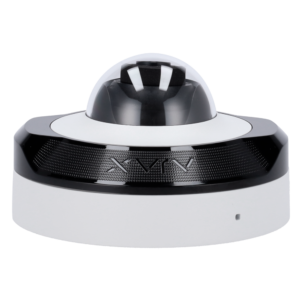 Cámara domo de 8 megapíxeles con lente de 2.8 mm, con protección IP65. Ofrece visión nocturna por infrarrojos y luz blanca de hasta 15 metros, y cuenta con micrófono integrado para grabación de audio.