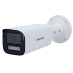 La cámara bullet IP incorpora iluminación IR con alcance efectivo de 50 metros, garantizando captación de imágenes nítidas en condiciones de oscuridad total. Además, el sistema de luz dual permite activar iluminación blanca ante detección de intrusos, funcionando como elemento disuasorio activo y mejorando la calidad de imagen en color durante eventos nocturnos.