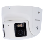 Cámara IP tipo turret Hikvision de 8 megapíxeles con tecnología ColorVu panorámica, diseñada para instalaciones profesionales que requieren videovigilancia en color las 24 horas. Equipada con objetivo de 4mm, iluminación LED integrada, alcance IR de 40 metros, audio bidireccional y protección IP67 para entornos exteriores exigentes.
