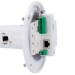 Compatible con alimentación PoE+ (IEEE 802.3at), la cámara simplifica el cableado al recibir datos y energía por un único cable Ethernet, reduciendo costes de instalación y puntos de fallo. La compresión H.265+ optimiza el ancho de banda hasta un 75% respecto a H.264, permitiendo mayor número de cámaras por switch y reduciendo los requisitos de almacenamiento en grabadores NVR.