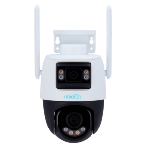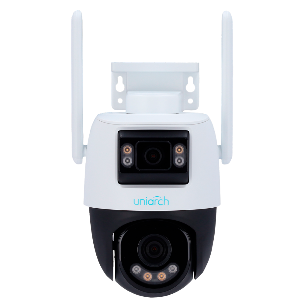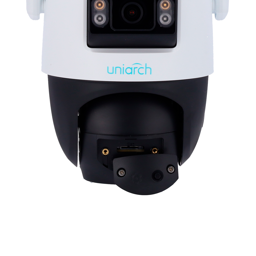 La cámara IP PT Uniarch de 5 megapíxeles combina una lente panorámica de 2.8 mm y una lente PT de 4 mm, ofreciendo una cobertura completa y detallada en alta resolución. Su sensor CMOS de escaneo progresivo y sensibilidad de 0.003 Lux permiten capturar imágenes nítidas incluso en condiciones de baja iluminación, complementadas por IR y luz blanca con alcance de hasta 30 metros en modo detalle.
