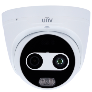 Cámara Térmica dual IP tipo Turret con lente óptica de 4 MP y 2.6 mm; lente térmica de 256×192 y 2.1 mm. Ideal para instalación en protección de perímetro, dado que cuenta con SIP para detectar intrusiones a largas distancias con la lente térmica y luego poder tener un reconocimiento con la lente óptica.