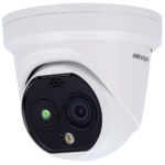 La cámara térmica biespectral DS-2TD1228T-2/QA(B) de HIKVISION combina imagen térmica y óptica para medición precisa de temperatura corporal en puntos de control de accesos. Diseñada para instaladores profesionales que requieren detección de fiebre, reconocimiento de mascarilla y videovigilancia integrada en un único dispositivo conforme a normativa europea.