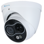 Cámara térmica turret dual IP de alta precisión con sensor VOx 256×192 (sensibilidad ≤40mK) y sensor óptico 1/2.7″ de 2 Megapíxeles. Incorpora tecnología WizSense con clasificación inteligente de humanos y vehículos, detección avanzada de humo y calor, audio bidireccional, entradas/salidas de alarma y almacenamiento en MicroSD. Alimentación PoE para instalaciones profesionales.