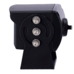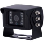 Cámara de videovigilancia vehicular AHD con resolución Full HD 1080p y certificación IP66 contra polvo y agua. Diseñada específicamente para instalación en vehículos comerciales, flotas de transporte y maquinaria móvil, con soporte abatible que facilita el ajuste del ángulo de visión y compatibilidad total con sistemas grabadores Streamax.