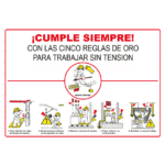 Cartel informativo de Las cinco reglas de oro para trabajar sin tensión. PVC 0,7 mm y Aluminio 0,8 mm. Varios tamaño.