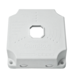 Caja de conexiones CBOX-NX1-1118 fabricada en plástico resistente, diseñada específicamente para instalaciones de cámaras domo en interiores. Proporciona sellado completo mediante tapas CamBox y permite montaje versátil en techo o pared. Solución profesional para ocultar y proteger el cableado de sistemas de videovigilancia.