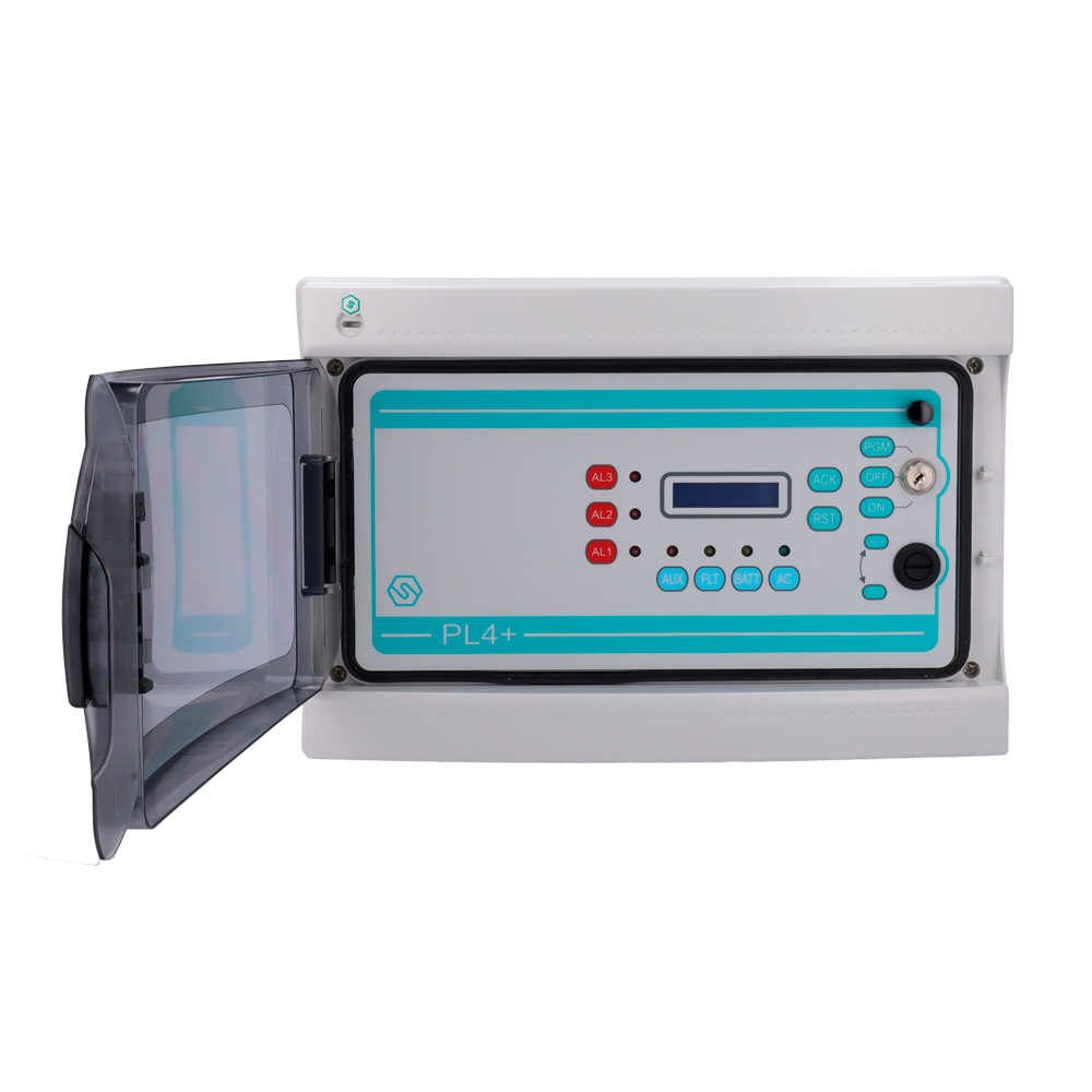 - 5 relés, uno para cada umbral, uno para fallo y uno programable