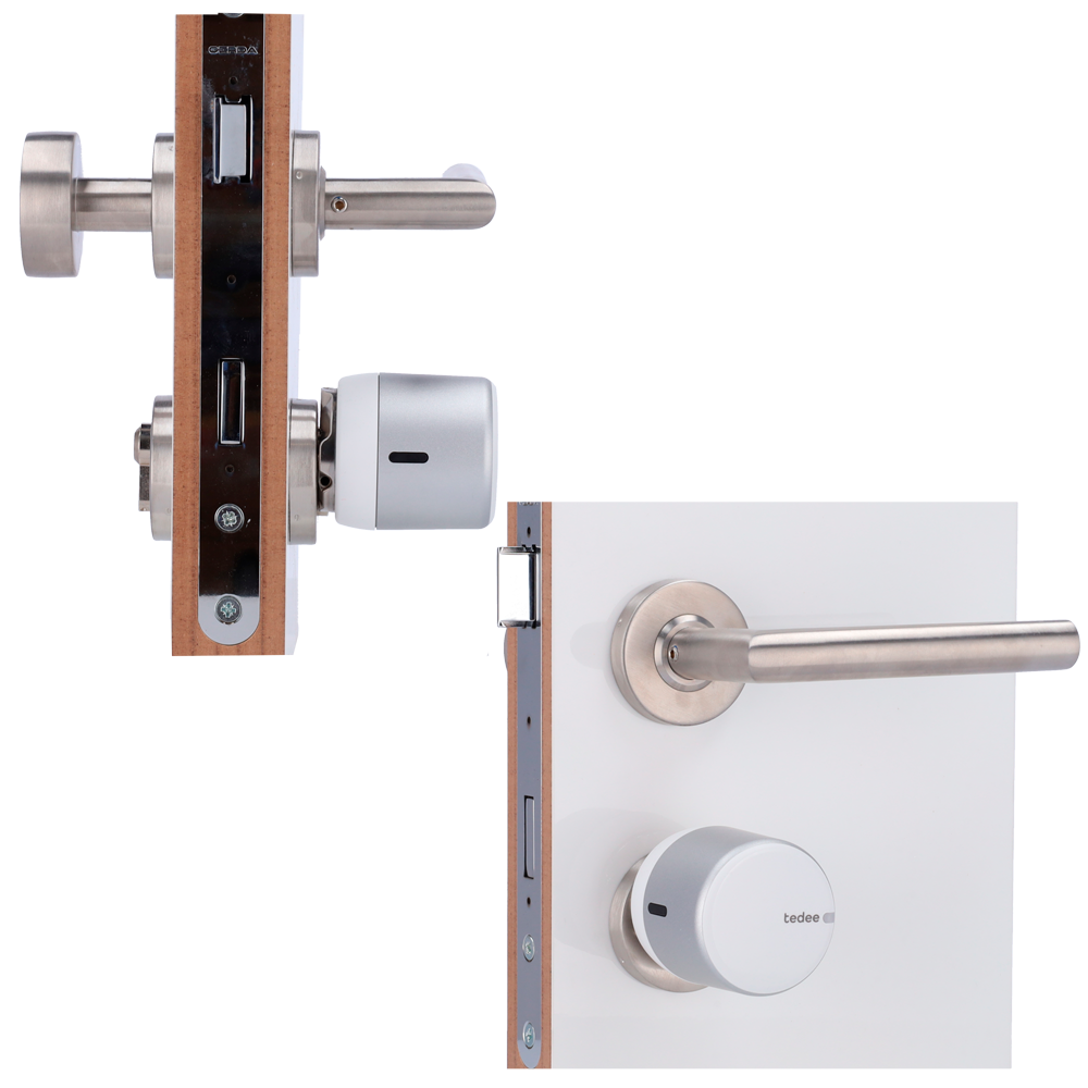 - Apertura de puerta a través de APP gratuita Tedee o por proximidad sin contacto