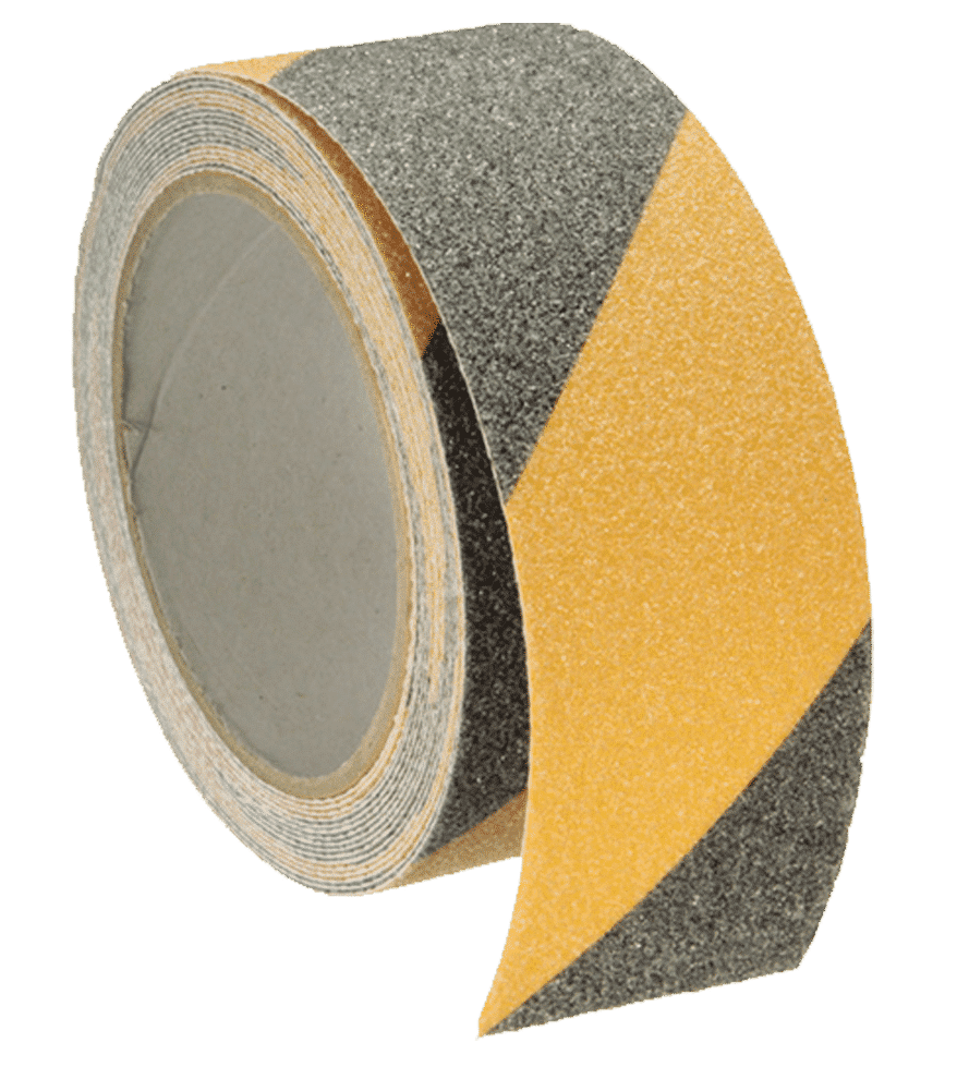 La cinta antideslizante abrasiva. Base aluminio. Disponible en un ancho de 50 mm. Disponible en varios colores. Se sirve en bobinas de 18,3 metros.